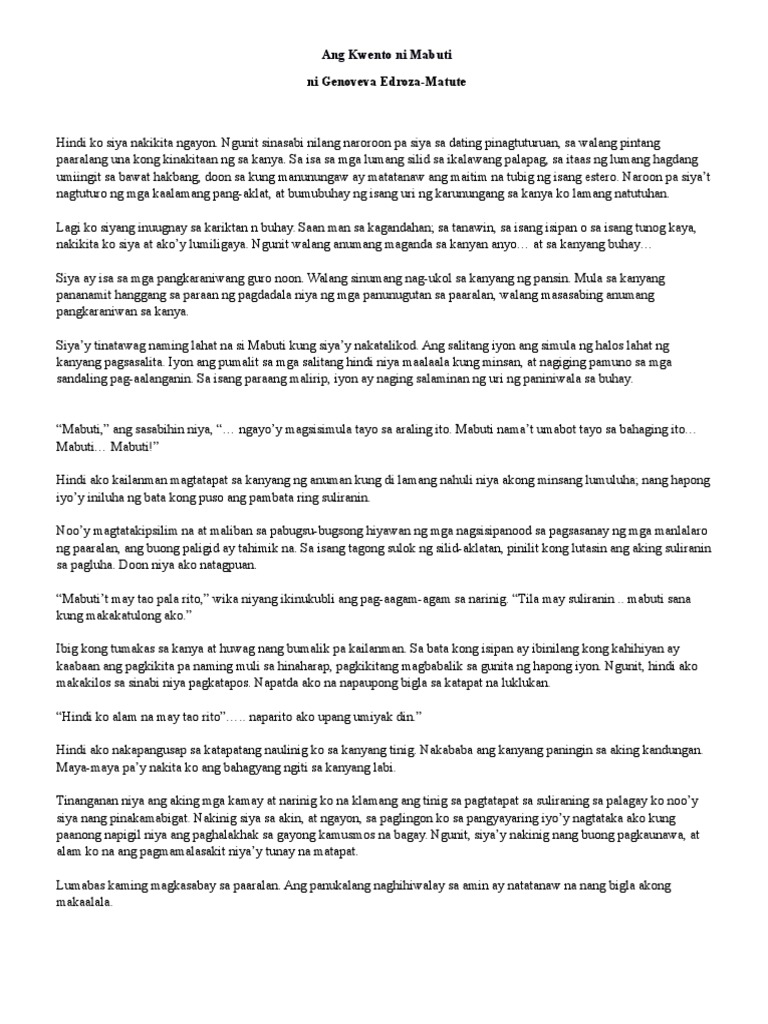 43853082 Kwento Ni Mabuti Pagsusuri Docx Pahina 1 Ng 5 Kwento Ni Mabuti Pagsusuri Ni Genoveva Edroza Matute Mga Tauhan Mabuti Isang Guro Sa Course Hero