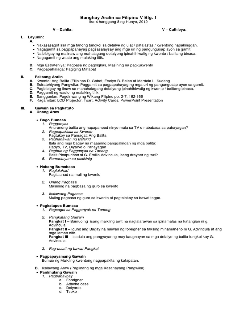 Banghay Aralin Sa Filipino V Blg 1 Pdf